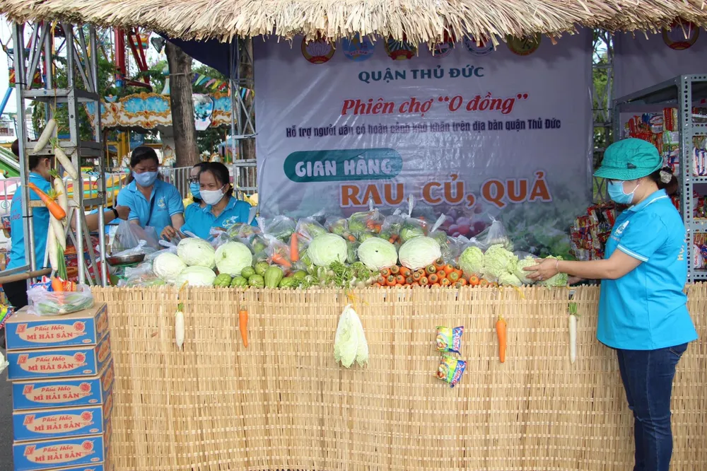 Sáng 26-4, tại cây ATM gạo Nhà Thiếu nhi quận Thủ Đức, Ủy ban MTTQ Việt Nam quận Thủ Đức cùng các đoàn thể quận tổ chức “Phiên chợ 0 đồng” với các mặt hàng thiết yếu phục vụ người dân đến nhận gạo.