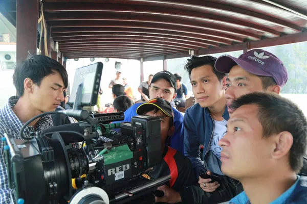 Đạo diễn Việt Anh (thứ ba từ phải sang) tại hậu trường bộ phim Vệ sĩ, tiểu thư và thằng khờ