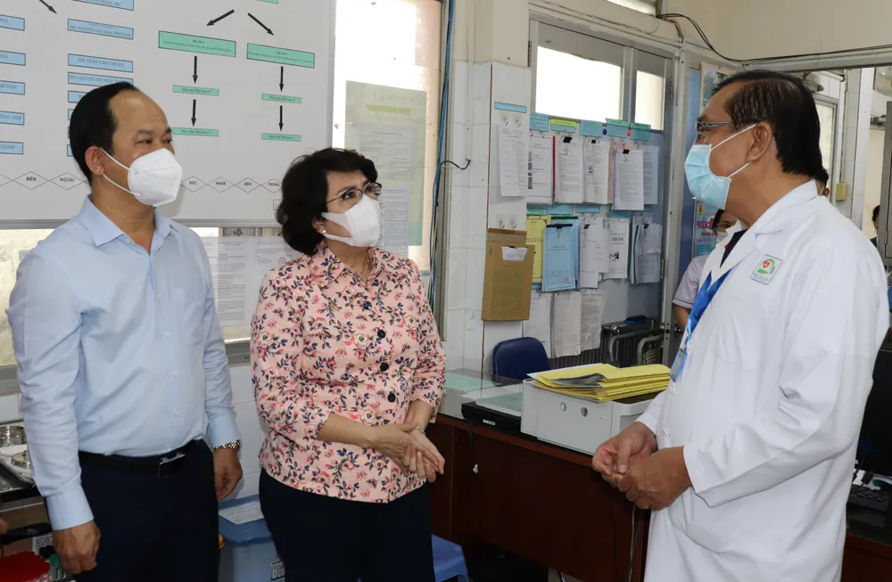 Đoàn cũng đến thăm Bệnh viện quận 1, Trung tâm y tế quận 1. Đồng chí cho rằng, dù áp lực đối với y bác sĩ và bệnh viện rất lớn nhưng đội ngũ y bác sĩ bệnh viện luôn vượt lên khó khăn, mang lại niềm vui cho người bệnh, đóng góp lớn cho ngành y tế.