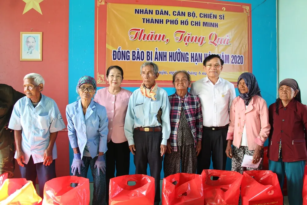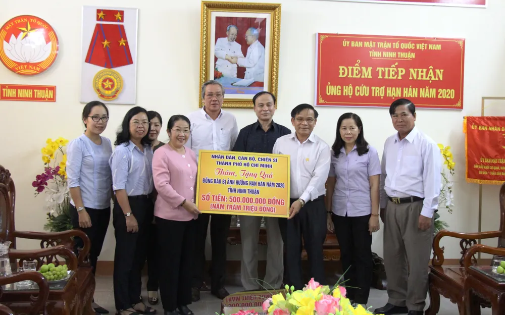 Tại Ninh Thuận, đoàn công tác đã trao 500 triệu đồng cho Ủy ban MTTQ Việt Nam tỉnh Ninh Thuận. Đây là món quà tình cảm của nhân dân, cán bộ và chiến sĩ TPHCM hỗ trợ Ninh Thuận chăm lo đời sống cho đồng bào địa phương đang chịu thiệt hại nặng nề do hạn hán gây ra.