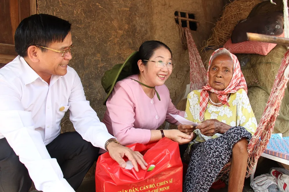 Phó Bí thư Thành ủy TPHCM Võ Thị Dung cùng đại diện Ủy ban MTTQVN tỉnh Ninh Thuận đến tận nhà những bà mẹ lớn tuổi để thăm hỏi, tặng quà