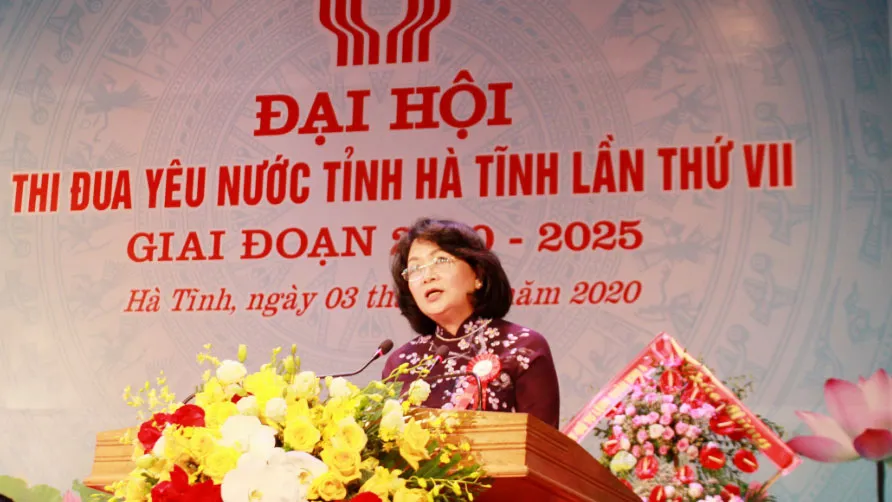 Phát biểu tại đại hội, Phó Chủ tịch nước Đặng Thị Ngọc Thịnh đánh giá cao những kết quả mà Hà Tĩnh đã đạt được trong phong trào thi đua 5 năm qua, qua đó thúc đẩy phát triển kinh tế - xã hội, ổn định chính trị, xây dựng Đảng và hệ thống chính trị vững mạnh; đồng thời tạo sức lan tỏa sôi nổi trong toàn Đảng, toàn dân.