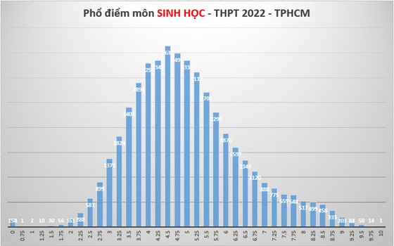 Biểu đồ thống kê điểm thi môn Sinh học của TPHCM