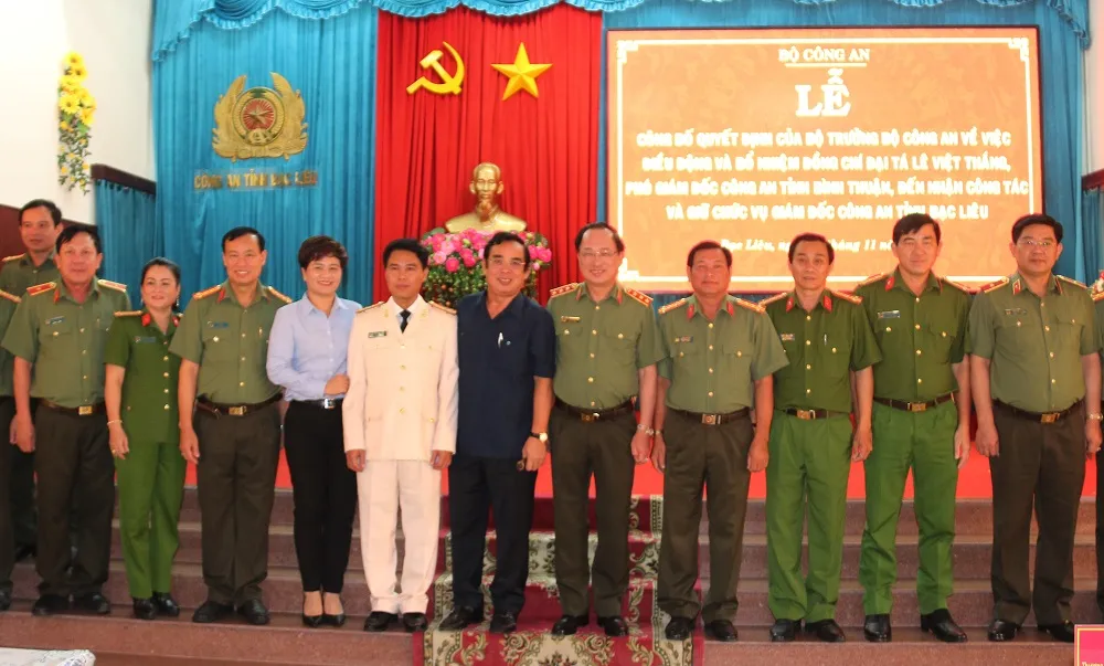 Thừa ủy quyền của Bộ trưởng Bộ Công an, Thượng tướng Nguyễn Văn Thành, Thứ trưởng Bộ Công an đã trao quyết định điều động và bổ nhiệm đồng chí Đại tá Lê Việt Thắng, Phó Giám đốc Công an tỉnh Bình Thuận, đến nhận công tác và giữ chức vụ Giám đốc Công an tỉnh Bạc Liêu.