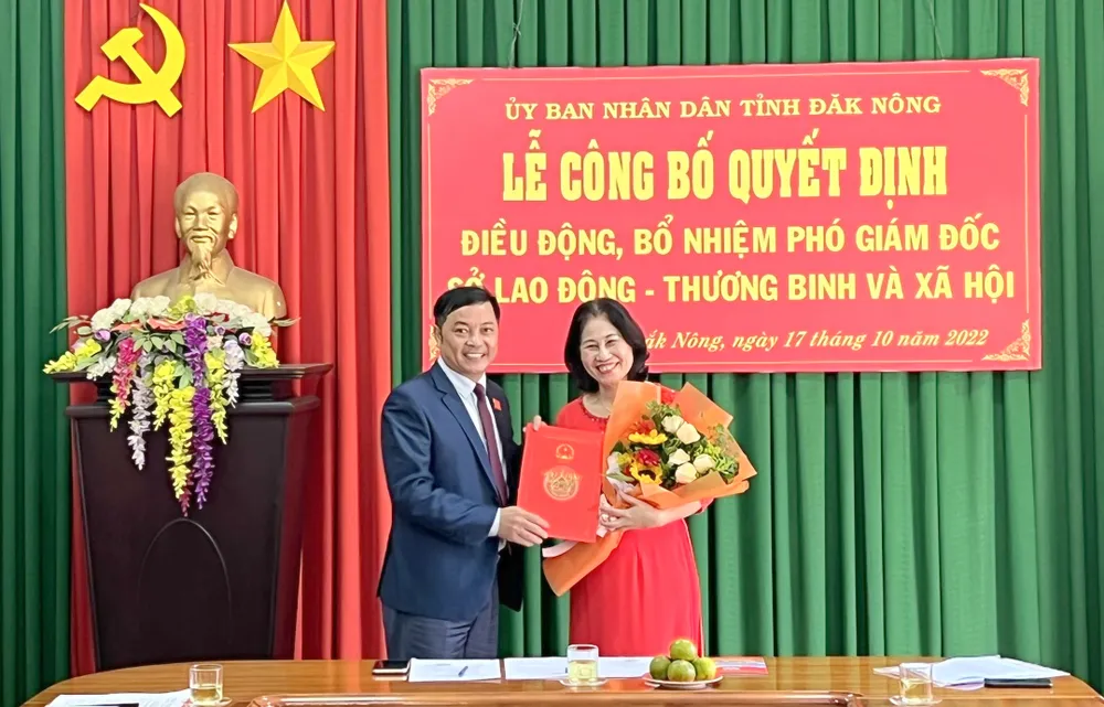 Sáng 17-10, UBND tỉnh Đắk Nông công bố quyết định bổ nhiệm Phó Giám đốc Sở LĐTB-XH tỉnh Đắk Nông đối với bà Nguyễn Thị Thanh Hương, nguyên Giám đốc Sở Y tế Đắk Nông.
