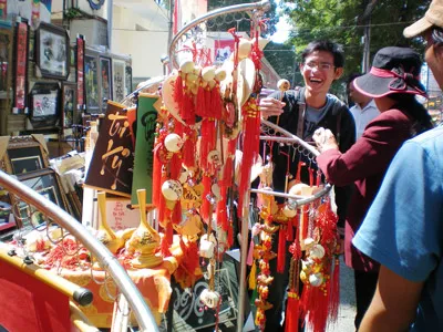 Nụ cười rạng rỡ của một bạn trẻ khi tìm mua được món đồ trang trí tại phố tranh thư pháp.