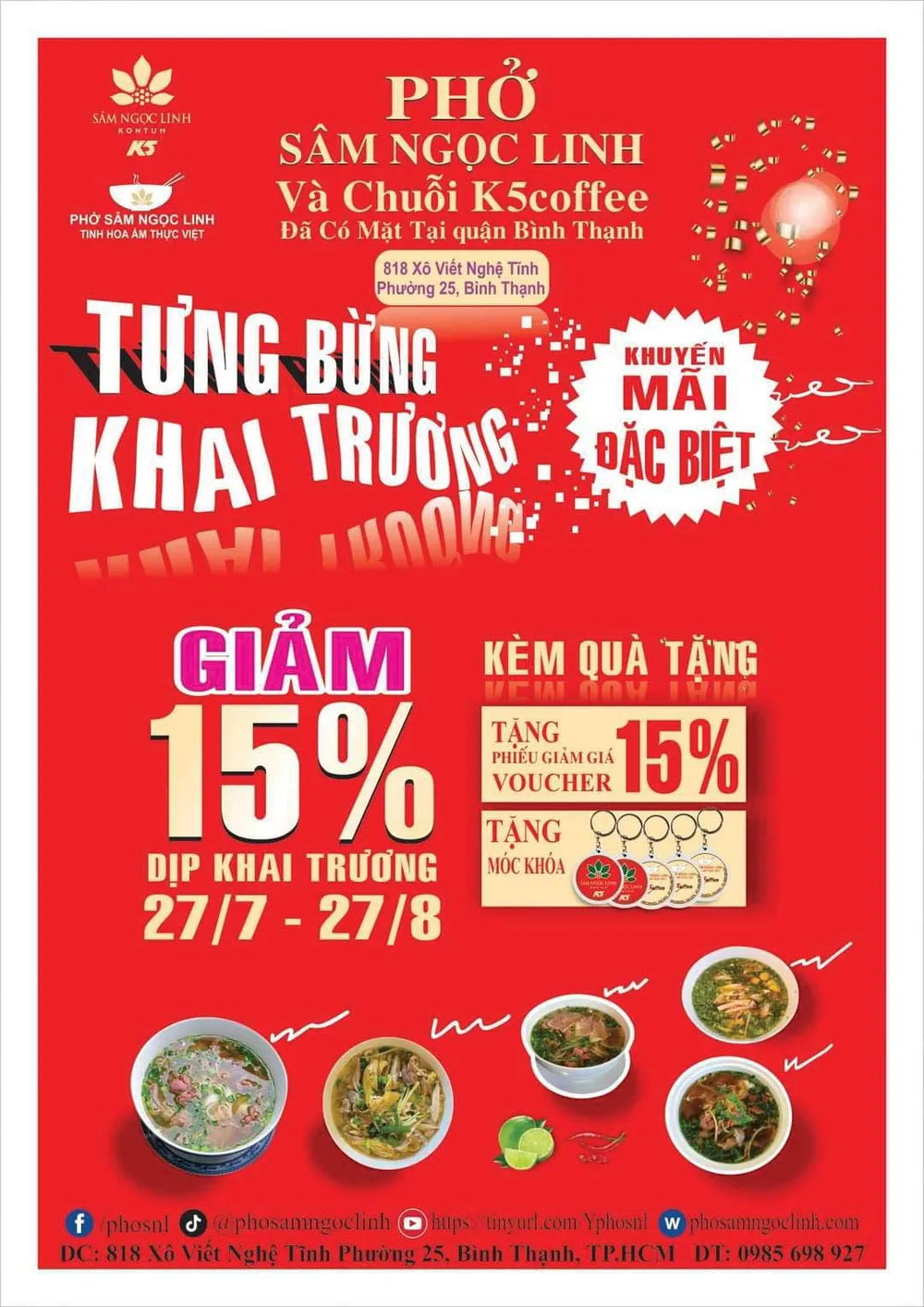 Theo ông Nguyễn An - Giám đốc thương mại thương hiệu Sâm Ngọc Linh Kon Tum K5 cho biết, “Sâm Ngọc Linh Kon Tum K5” được biết đến là quốc bảo của Việt Nam và“Phở” là món ăn quốc hồn - quốc túy, nay phở lại còn được kết hợp với Sâm Ngọc Linh tạo ra một món ăn mang hương vị mới, độc đáo, bổ dưỡng cho sức khỏe, tăng sức đề kháng. Đây là một món ăn và thức uống mang hương vị độc đáo, tốt cho sức khỏe…