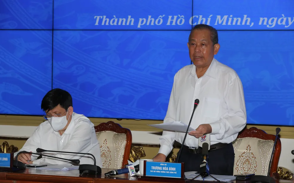 Phát biểu chỉ đạo tại buổi làm việc, đồng chí Trương Hòa Bình, Phó Thủ tướng Thường trực Chính phủ đánh giá cao Đảng bộ và chính quyền nhân dân TPHCM đã thực hiện hiệu quả công tác phòng chống dịch năm 2020 và đầu năm 2021. TP đã có nhiều giải pháp chủ động, linh hoạt, cách làm sáng tạo và phát huy được sức mạnh của cả hệ thống chính trị, các lực lượng chủ chốt như: quân đội, công an, y tế và các tổ chức đoàn thể để dập dịch nhanh, hiệu quả, góp phần ổn định kinh tế xã hội, thực hiện mục tiêu kép và qua đó có đóng góp quan trọng vào kinh tế xã hội của đất nước.