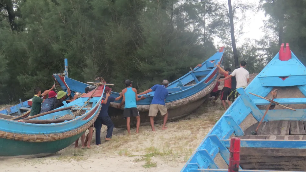 Ngư dân đưa thuyền chạy bão. Ảnh: Minh Phong