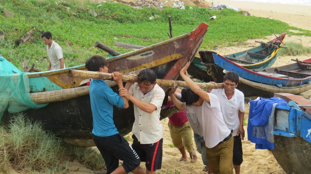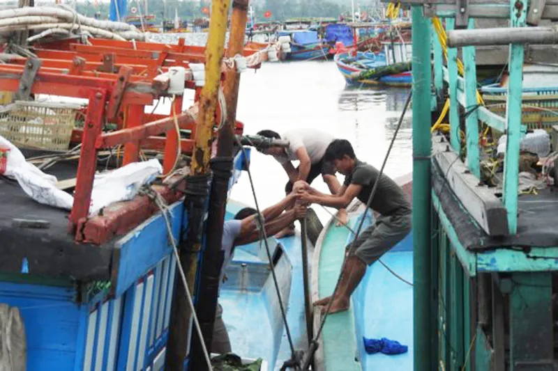 Ngư dân đưa thuyền chạy bão. Ảnh: Minh Phong