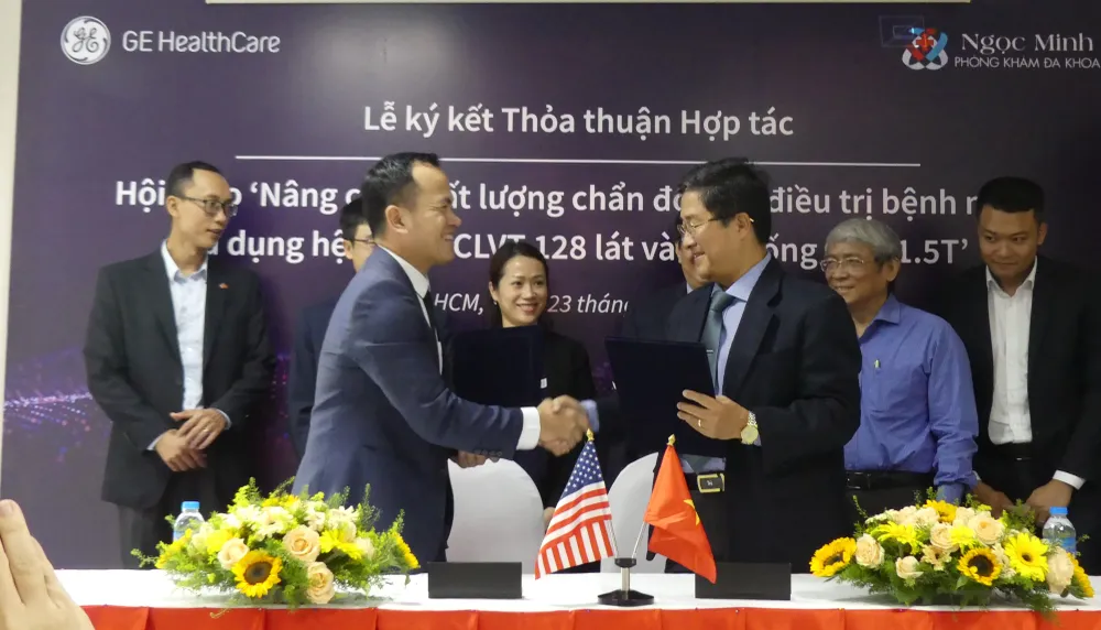 Ông Phạm Hồng Sơn, Tổng Giám đốc GE Healthcare Việt Nam cho biết, sự kiện ký kết thỏa thuận hợp tác giữa GE HealthCare và Hệ thống y tế Ngọc Minh đánh dấu một mốc son mới trong mối quan hệ hợp tác toàn diện giữa 2 bên. GE HealthCare cam kết đồng hành cùng Hệ thống y tế Ngọc Minh, đưa tới những giải pháp công nghệ hàng đầu trong lĩnh vực chẩn đoán hình ảnh, tạo ra những giá trị lâm sàng, phục vụ việc thăm khám điều trị và theo dõi sau điều trị cho bệnh nhân. Chúng tôi chú trọng việc xây dựng đội ngũ nhân sự để triển khai các chương trình đào tạo, cũng như đẩy mạnh các ứng dụng lâm sàng mới nhất, hỗ trợ cho Hệ thống y tế Ngọc Minh trong sứ mệnh chăm sóc sức khỏe cho người bệnh.