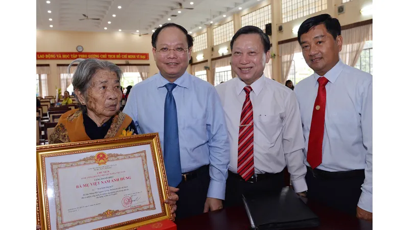 Thay mặt lãnh đạo TPHCM, Phó Bí thư Thường trực Thành ủy TPHCM Tất Thành Cang trân trọng gửi lời tri ân sâu sắc đến quý mẹ Việt Nam anh hùng được phong tặng và thân nhân mẹ được truy tặng.