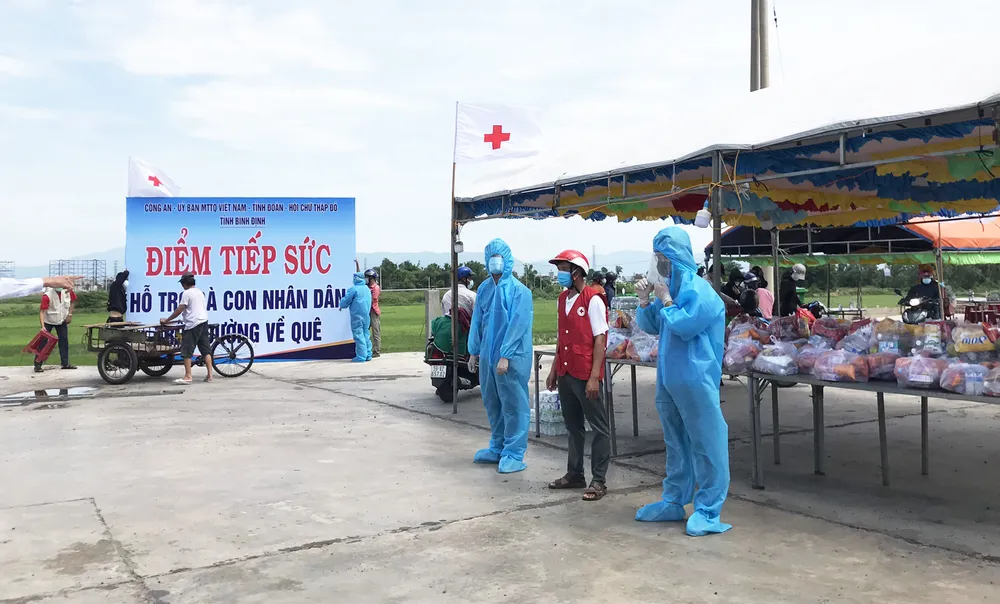 Tại tỉnh Bình Định, Ủy ban MTTQ Việt Nam tỉnh này đã phối hợp với công an tỉnh, Tỉnh đoàn và Hội Chữ thập đỏ mở nhiều trạm dừng chân để đón người dân từ phía Nam về quê đi ngang qua địa bàn tỉnh. Tại trạm dừng chân trên tuyến Quốc lộ 1A (đoạn thuộc phường Bình Định, thị xã An Nhơn, tỉnh Bình Định), từ sáng 9-10, lực lượng chức năng đã bắt đầu đón tiếp người dân chạy xe máy về nhà để thăm hỏi, hỗ trợ bà con.