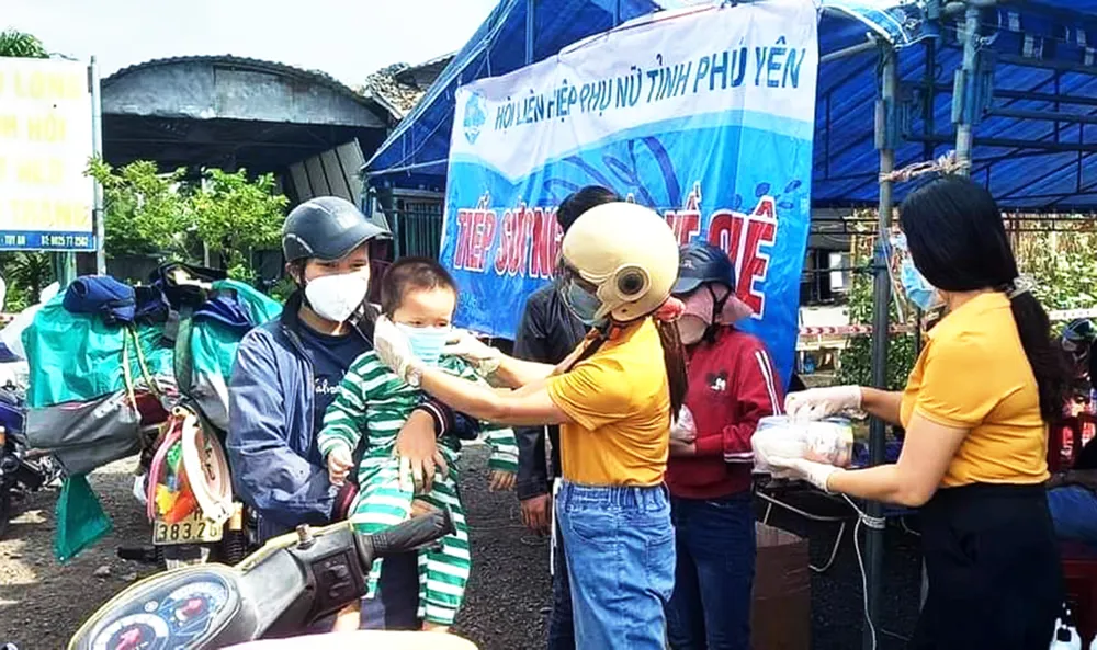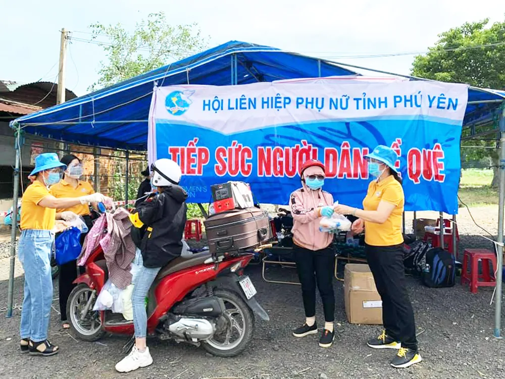 Hội Liên hiệp Phụ nữ tỉnh Phú Yên cũng huy động cán bộ cùng người dân tổ chức nấu những suất cơm, cháo, xôi... để “tiếp sức” người dân được ấm bụng. Ngoài ra, nhiều nhà hảo tâm tại tỉnh Phú Yên cũng mang lương thực, thực phẩm, tiền bạc để trạm dừng chân hỗ trợ đồng bào từ phía Nam về quê.