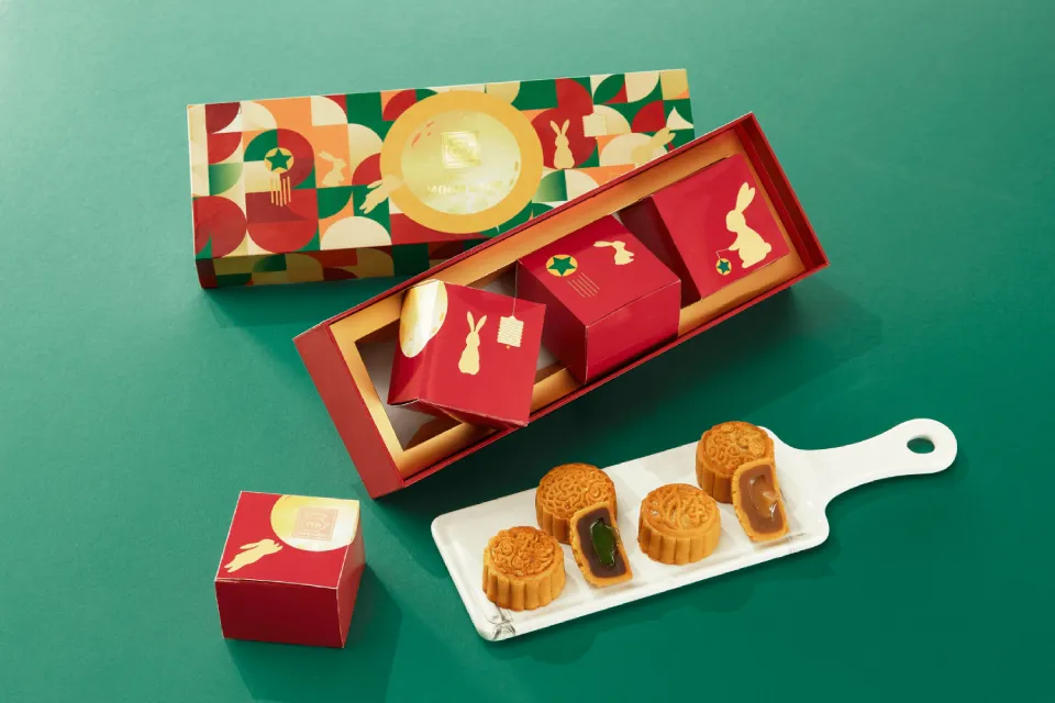 Lấy cảm hứng từ những họa tiết thân thuộc trong đêm rằm Trung thu như thỏ ngọc, ấm trà, hộp bánh Song Hảo Thưởng Nguyệt miêu tả hình ảnh thỏ ngọc thưởng trà dưới ánh trăng sáng như lời chúc an yên mà người tặng muốn gửi đến người nhận.