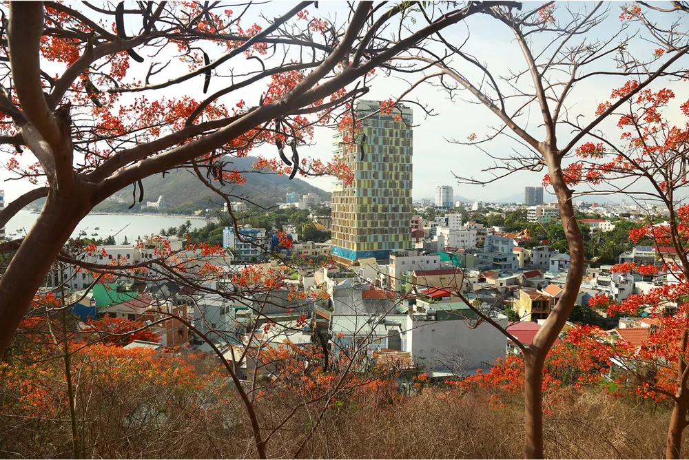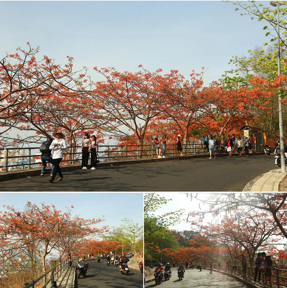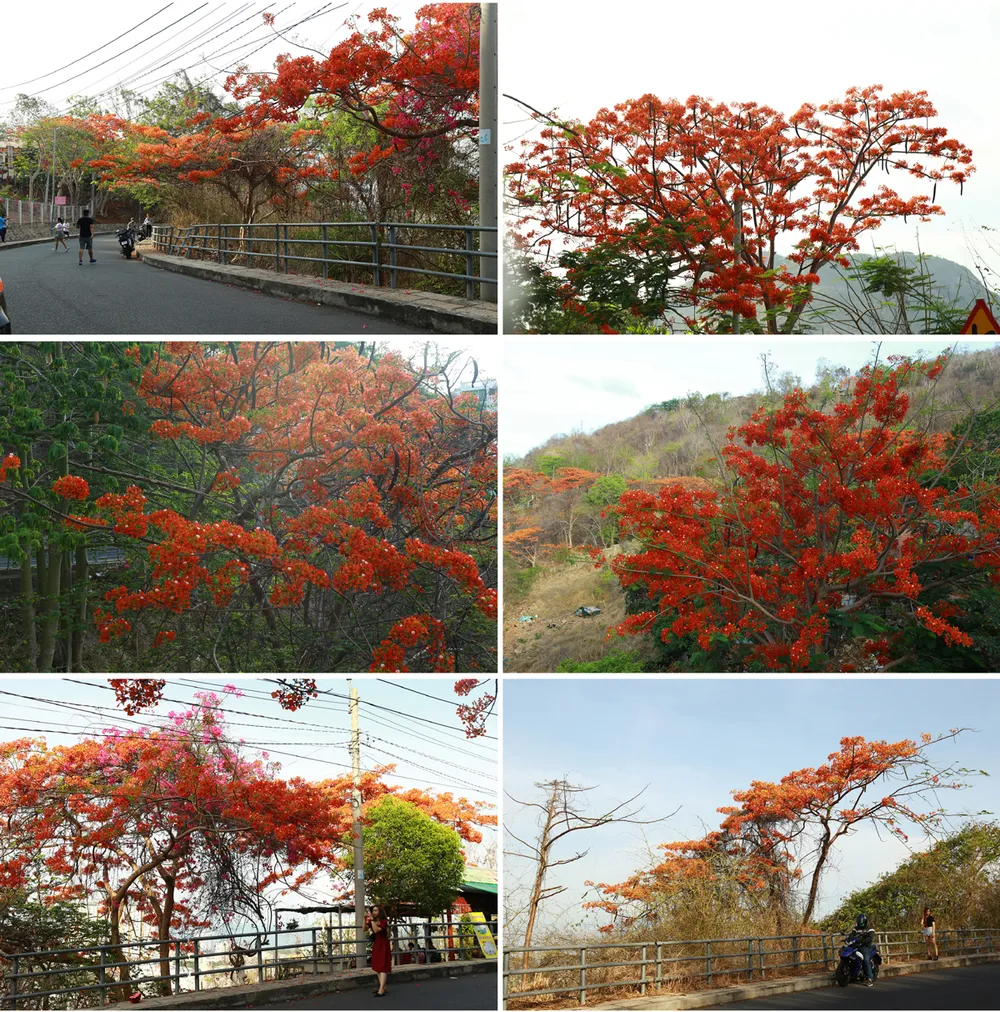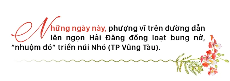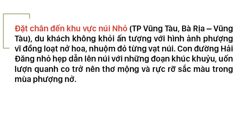 Những ngày này, phượng vĩ trên đường dẫn lên ngọn Hải Đăng đồng loạt bung nở, "nhuộm đỏ" triền núi Nhỏ (TP Vũng Tàu).