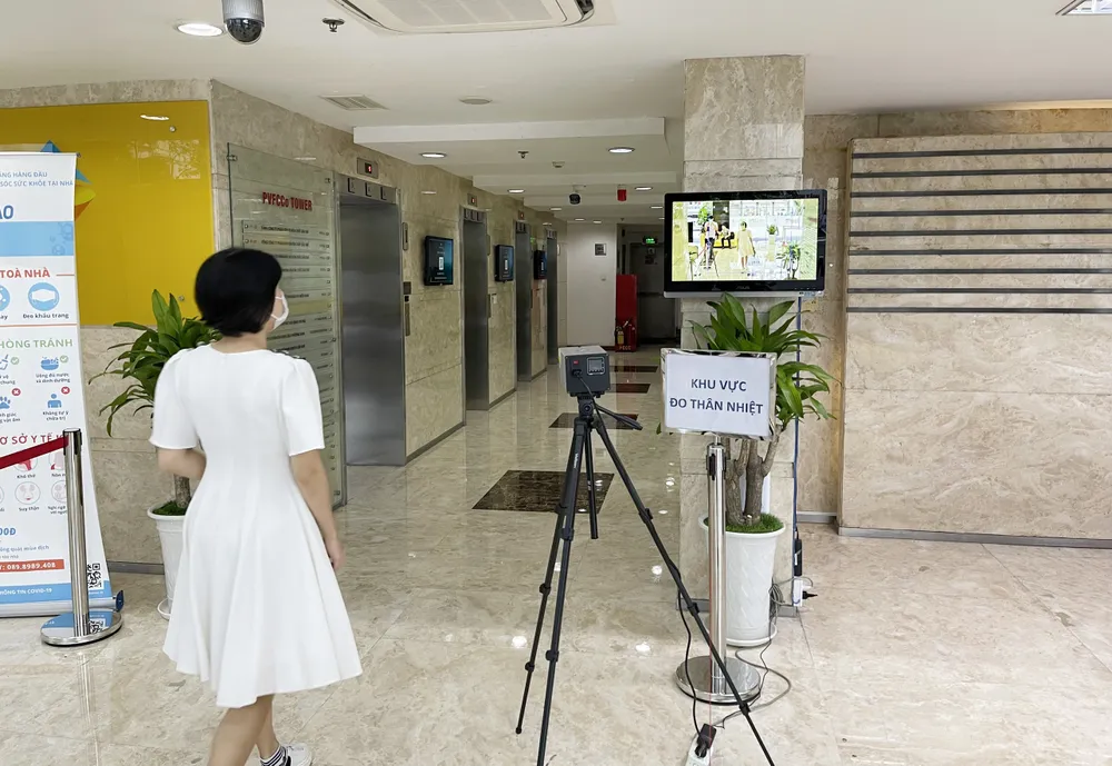 Đo thân nhiệt qua camera tại trụ sở Tổng Công ty Phân bón và Hóa chất Dầu khí