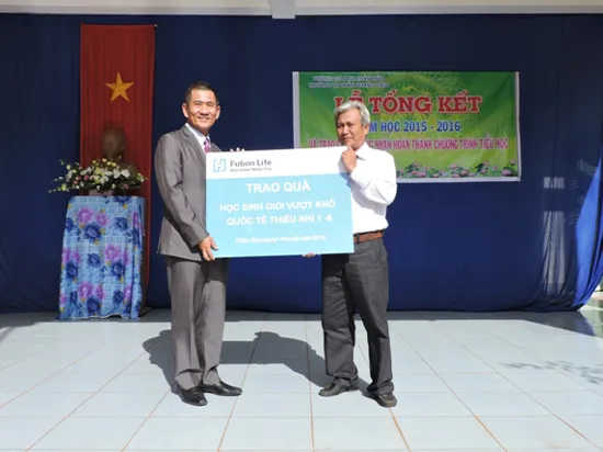 Hoạt động tặng quà nhân dịp Tết thiếu nhi 1-6 -2016 là một trong những hoạt động nằm trong chuỗi chương trình “Chắp cánh ước mơ tuổi thơ” Fubon Life Việt Nam triển khai trên toàn quốc. Trong dịp bế giảng năm học 2016 và ngày Quốc tế Thiếu nhi 1-6, Fubon Life Việt Nam đã tặng 200 suất quà gồm sách vở, dụng cụ học tập cho các học sinh tại hai trường mầm non Hoa Sen và Trường Tiểu học Trần Quang Diệu tại huyện Châu Đức, tỉnh Bà Rịa; tặng 135 chiếc quạt điện cho học sinh giỏi vượt khó của 4 trường Tiểu học Đăng Châu, thị trấn Sơn Dương, tỉnh Tuyên Quang và ba trường Tiểu học Khởi Nghĩa, trường Tiểu học Tiên Thắng và trường Tiểu học Vinh Quang huyện Tiên Lãng, TP Hải Phòng.