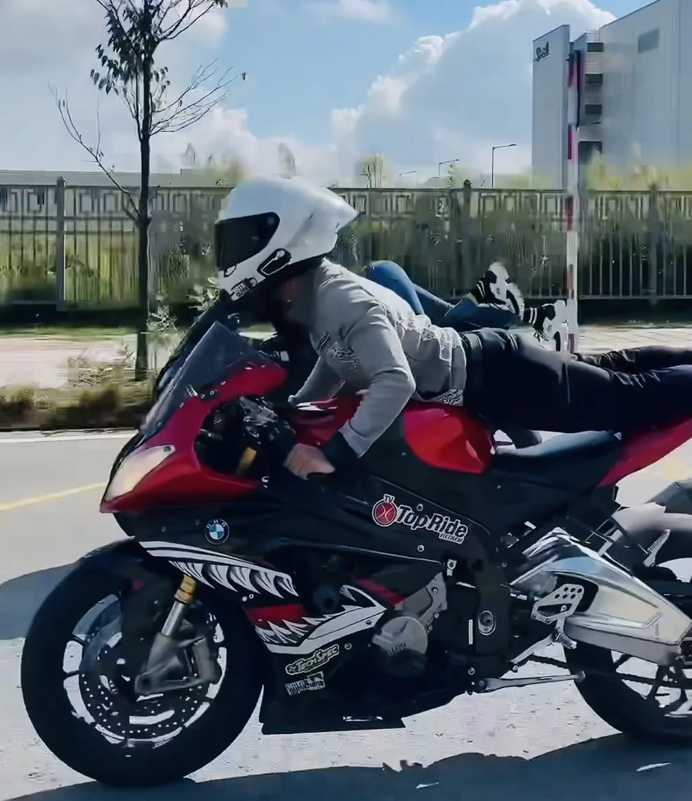 Một số “quái xế” rú ga, nẹt pô lao nhanh rồi chuyển sang biểu diễn bằng cách bốc đầu xe, đi xe 1 bánh. Quá trình này, một số “quái xế” lảo đảo như sắp té… Tuy nhiên, sau đó họ lại biểu diễn một cách liều mạng hơn. Chừng 1 tiếng sau, các “quái xế” rời khỏi khu vực này.