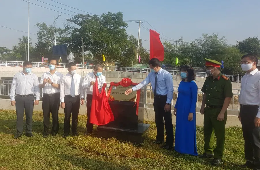 Lãnh đạo quận 12 gắn bảng công trình bò kè rạch Sơ Rơ