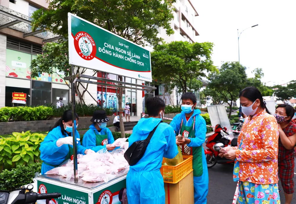 Từ các điểm bán hàng lưu động, người dân quận 4 mua được thực phẩm thiết yếu cho gia đình mà không mất nhiều thời gian chờ đợi