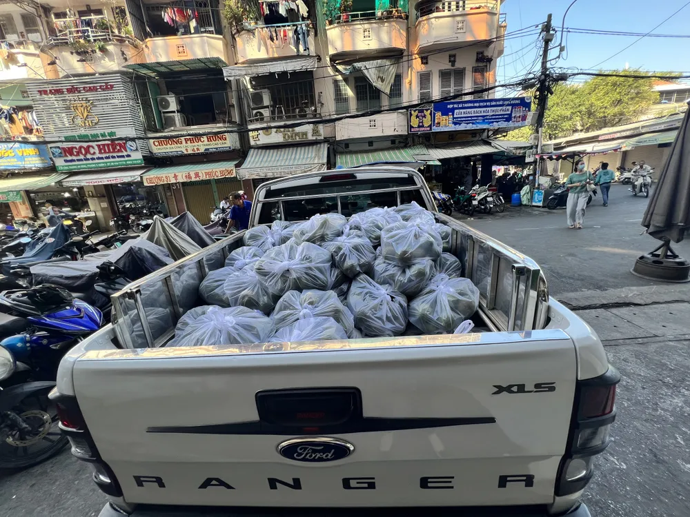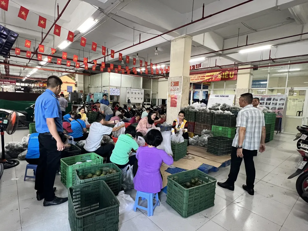 Gần 0 giờ ngày 17-2, chuyến xe chở 4,8 tấn cam sành từ huyện Trà Ôn, tỉnh Vĩnh Long lên tới Trung tâm Thương mại dịch vụ An Đông, quận 5. Ban quản lý trung tâm đã huy động toàn bộ lực lượng của ban để xếp dỡ hàng.