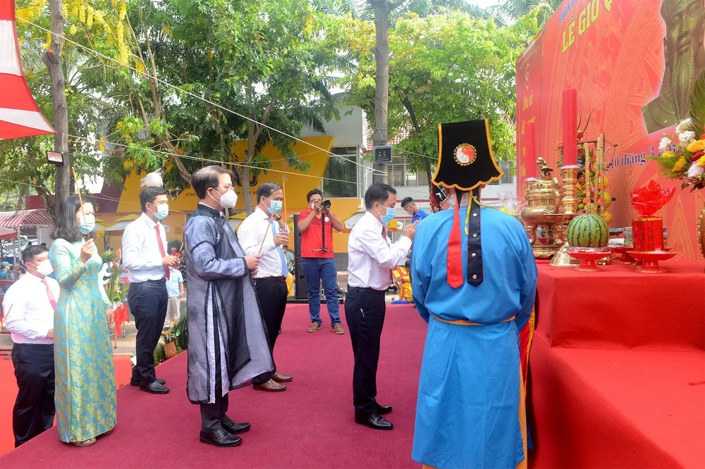 Sau buổi lễ, các đồng chí lãnh đạo quận 6 cùng người dân tham gia các nghi thức giỗ Quốc Tổ như: dâng trầm hương, bánh dày, bánh chưng, dưa hấu... và nghi thức dâng hương, dâng cúng trong không gian âm nhạc truyền thống.