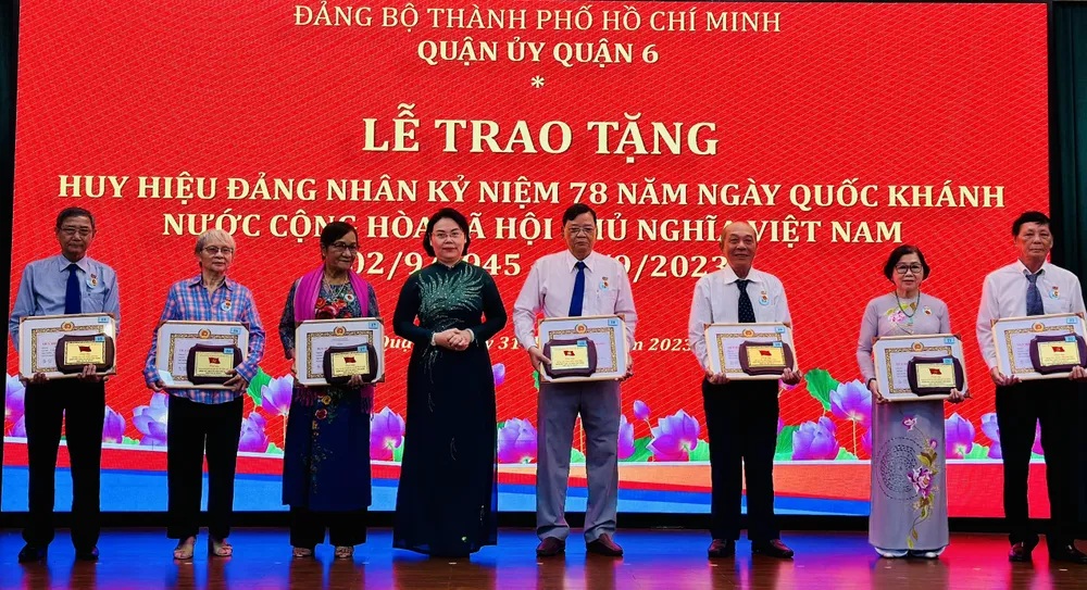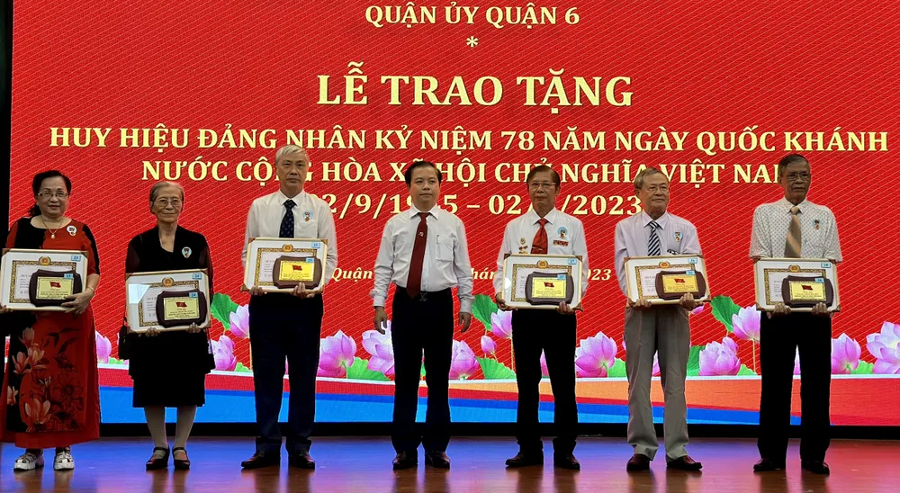 Dịp này, Quận ủy quận 6 đã trao tặng Huy hiệu 60 năm tuổi Đảng (5 đồng chí); Huy hiệu 55 năm tuổi Đảng (9 đồng chí), Huy hiệu 50 năm tuổi Đảng (8 đồng chí, Huy hiệu 45 năm tuổi Đảng (7 đồng chí); Huy hiệu 40 năm tuổi Đảng (24 đồng chí) và Huy hiệu 30 năm tuổi Đảng (14 đồng chí).