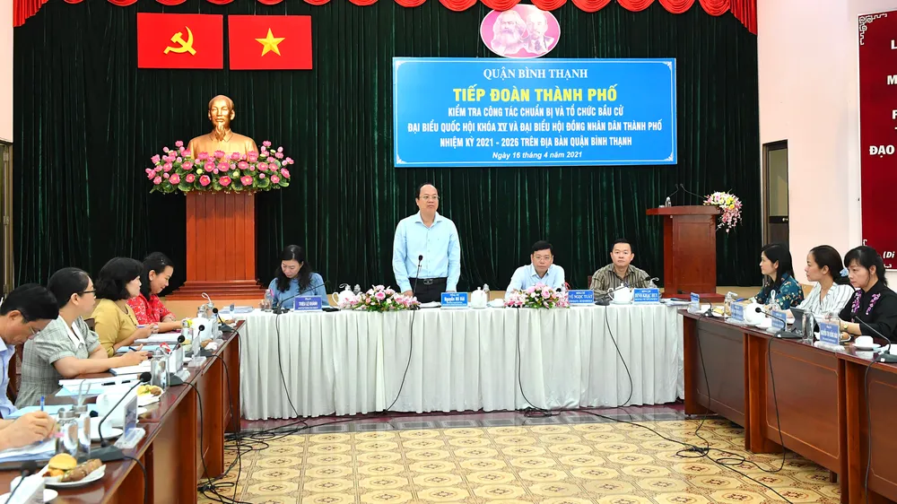 Phát biểu tại buổi giám sát, Phó Bí thư Thành ủy TPHCM Nguyễn Hồ Hải cho rằng, công tác chuẩn bị và tổ chức bầu cử ĐBQH khóa XV và đại biểu HĐND TPHCM nhiệm kỳ 2021 - 2026 là công việc cực kỳ quan trọng của năm và cả nhiệm kỳ. Do đó, quận phải thực hiện chu đáo, chặt chẽ, kỹ lưỡng, đảm bảo đúng pháp luật, tránh xảy ra những sơ suất để cuộc bầu cử diễn ra thành công và đạt hiệu quả cao nhất.