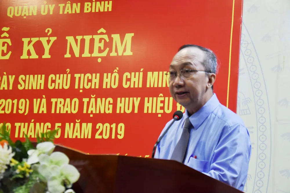 Đồng chí Chung nhấn mạnh: “Kỷ niệm ngày sinh của Bác 19-5, là dịp để chúng ta thể hiện sự kính trọng và lòng biết ơn vô hạn của Đảng bộ và nhân dân quận Tân Bình đối với Bác Hồ kính yêu. Chúng ta thấm thía và khắc sâu lời dạy của Người trong bản Di chúc thiêng liêng. Mỗi điều Bác trăn trở, dặn lại trong Di chúc đều chứa chan tấm lòng một hiền nhân đối với con người, với thiên nhiên, với quê hương đất nước, phản ánh tư tưởng, tình cảm, đạo đức và tâm hồn một Người con ưu tú của dân tộc Việt; với tất cả những gì Người đã làm, đã mẫu mực nêu gương mãi là bài học cho từng cán bộ, đảng viên trên con đường theo bước chân Người”.