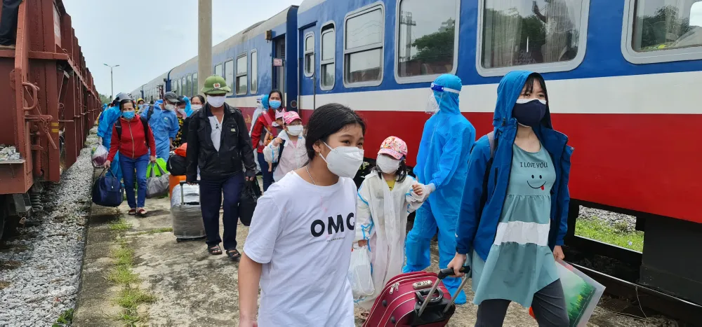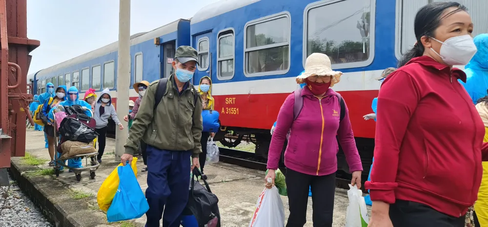 Tại ga Mỹ Đức, đã có 446 hành khách xuống ga, được lực lượng y tế Quảng Bình và huyện Lệ Thủy hỗ trợ đưa đi cách ly.
