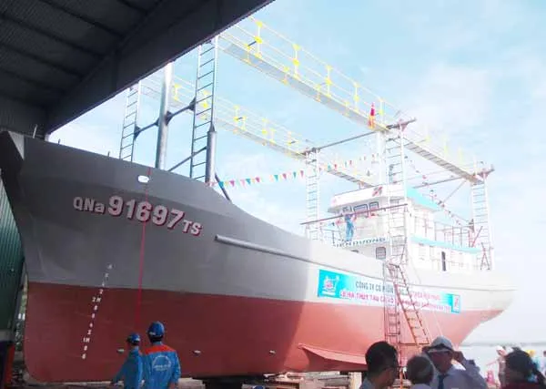 (SGGPO).- Sáng ngày 24-10, tại Công ty CP Đóng tàu Thiên Hậu Phước, xã Tam Giang, huyện Núi Thành, tỉnh Quảng Nam đã làm lễ hạ thủy tàu vỏ thép QNa-91697TS do ngư dân Phan Bá Tầm làm chủ với tổng giá trị 18 tỷ đồng.