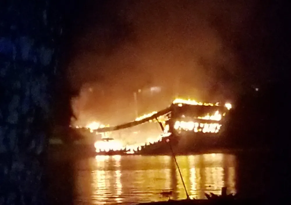 | Toàn bộ tàu cá bị cháy trơ khung |