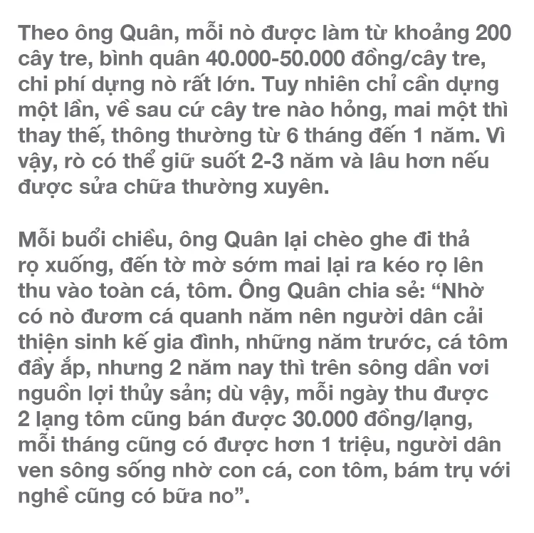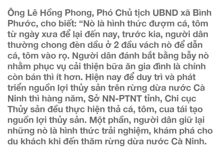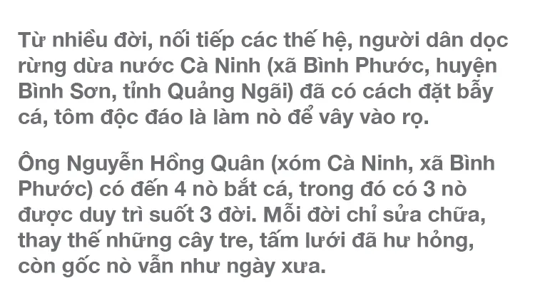 Nò là cách đánh bắt thủy sản truyền thống của người dân dọc rừng dừa nước Cà Ninh (xã Bình Phước, huyện Bình Sơn, tỉnh Quảng Ngãi).