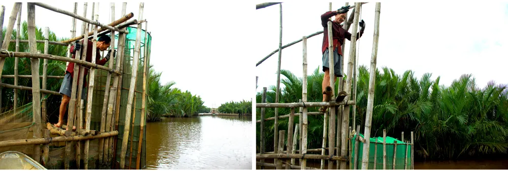 Quảng Ngãi: Độc đáo làm nò vây bắt cá, tôm trong rừng dừa nước Cà Ninh