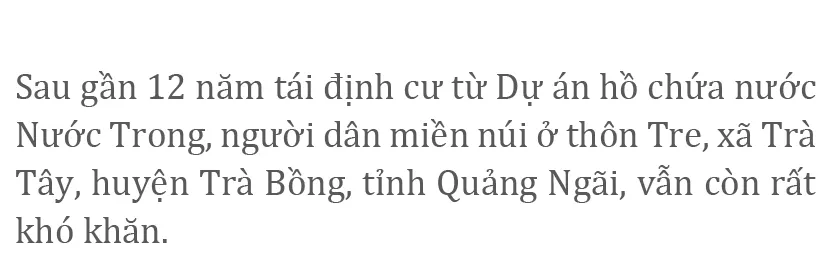 Thôn Tre có 220 hộ, 992 nhân khẩu sinh sống trong 7 tổ dân cư. Kể từ khi di dời đến khu ở mới vào năm 2011 cho đến nay, người dân thôn Tre không chỉ khó khăn trong đi lại mà còn thiếu thốn tứ bề. Trưởng thôn Tre, nói: “Người dân rất khó khăn, xung quanh núi cao, rừng phòng hộ lớn, ruộng lúa nước thì không có nước tưới, lúa rẫy cũng ít, trồng quế, trồng keo cũng chỉ vài năm nay nên chưa có nguồn thu nhập”.