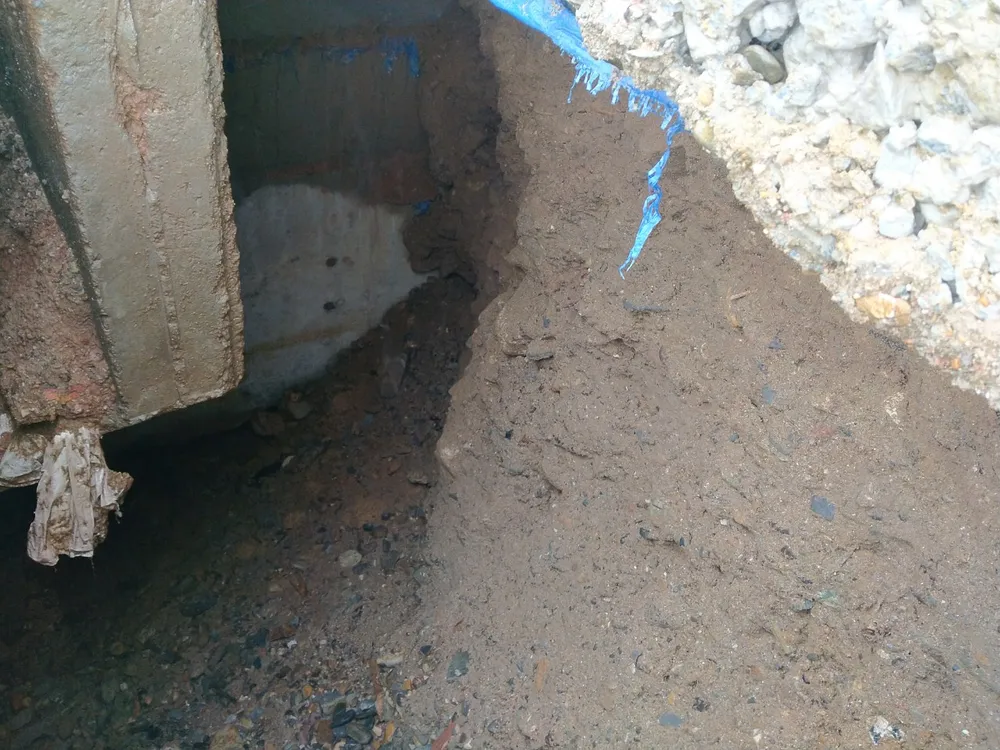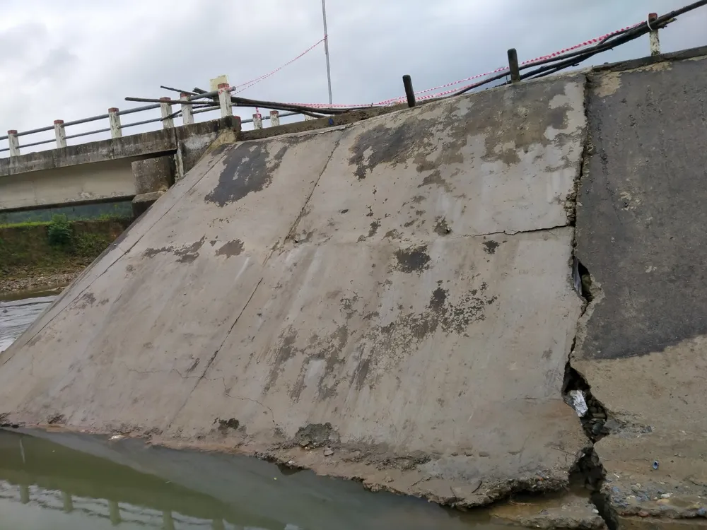 Phần cống tràn cầu Hy Long (xã Ba Điền) bị sụt lún