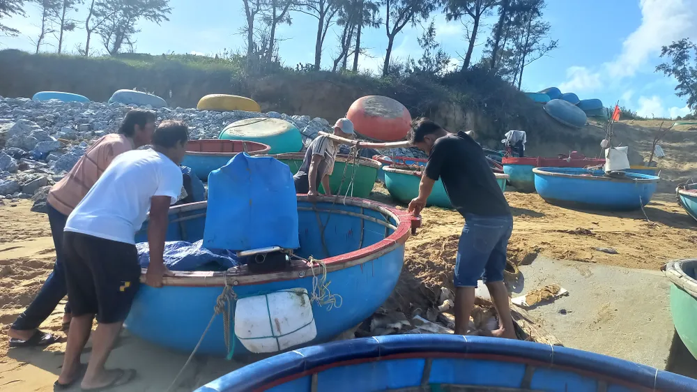 Ngư dân vui mừng việc neo đậu tàu thuyền được an toàn, đồng thời nhà cửa đảm bảo khi bão lũ đến. Ảnh: NGUYỄN TRANG
