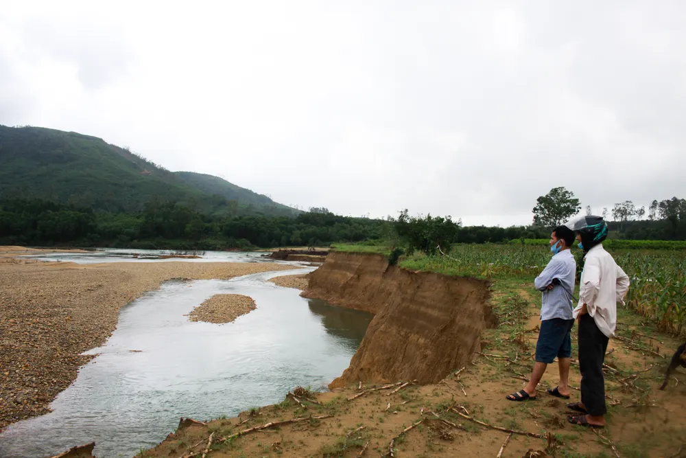 Ông Mai Văn Tiến, một người dân ở đây cho biết: “Mảnh đất ven sông vốn để trồng trọt với diện tích 300m2 nhưng mưa lũ vừa qua đã làm sạt lở chỉ còn khoảng 100m2. Trời mưa liên tục, đất ven sông đã ngấm nước, nguy cơ sạt lở vẫn còn diễn ra”.