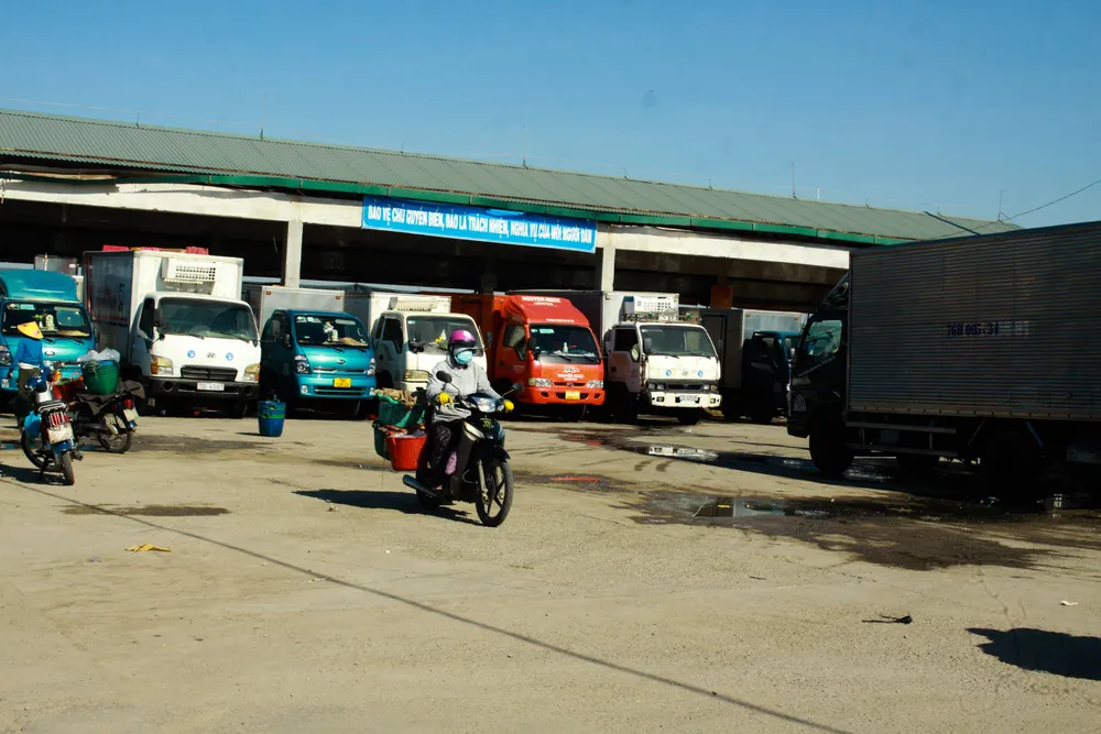 Xe tải, xe đông lạnh tập trung rất đông về cảng để chở cá, do vậy, công tác phòng, chống dịch cần phải đảm bảo nhằm tránh nguy cơ lây bệnh từ tài xế đường dài. Ảnh: NGUYỄN TRANG