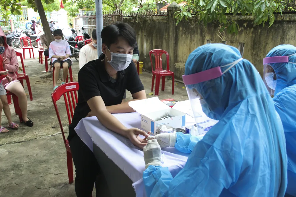 Nhân viên y tế lấy mẫu máu của người dân để xét nghiệm nhanh