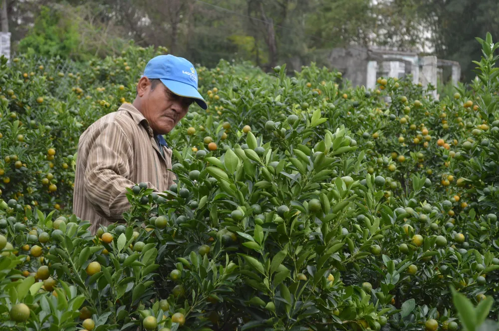 “Trồng quất dùng thuốc rất nhiều, khi chồi mới nứt cũng dùng; cây có hoa, có trái thì bơm thuốc để giữ không cho sâu rầy chích. Tiếp đến, thời kỳ cây nuôi quả, giữ quả cũng phải bơm, tùy thời điểm. Do đó, chi phí rất cao, nhưng chỉ cần lơ là, chủ quan một vài lần thì xem như cây hư hại, thất bại”, ông Trúc dẫn giải.