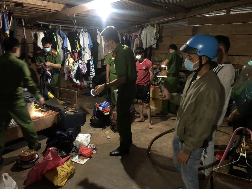 Lực lượng công an khám xét nhà đối tượng Sơn