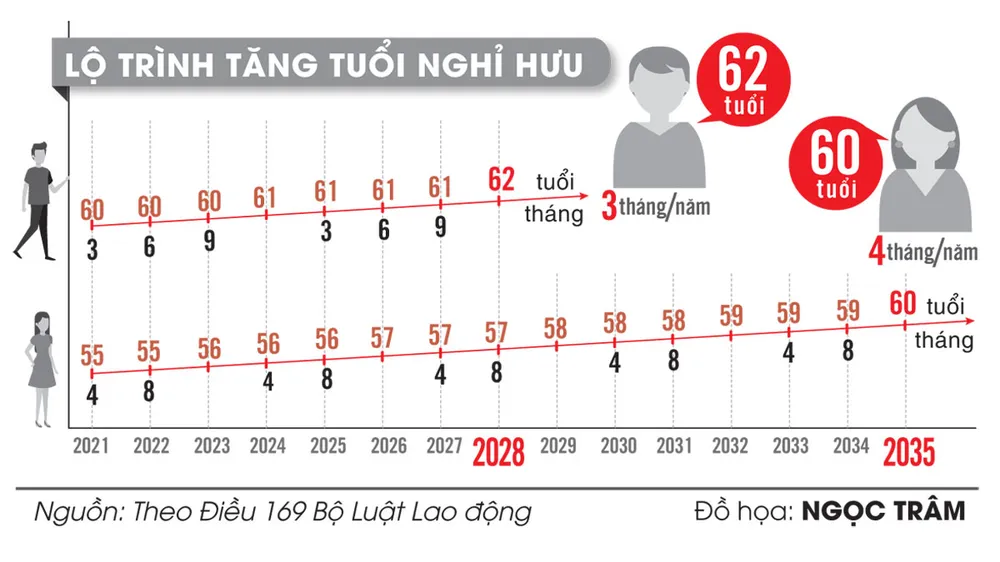 Sáng 20-11, Quốc hội thông qua Bộ luật Lao động sửa đổi với 435 đại biểu tán thành (tỷ lệ 90%). Theo đó, tuổi nghỉ hưu trong điều kiện lao động bình thường sẽ theo lộ trình cho đến khi đủ 62 tuổi đối với nam (vào năm 2028) và đủ 60 tuổi đối với nữ (vào năm 2035).