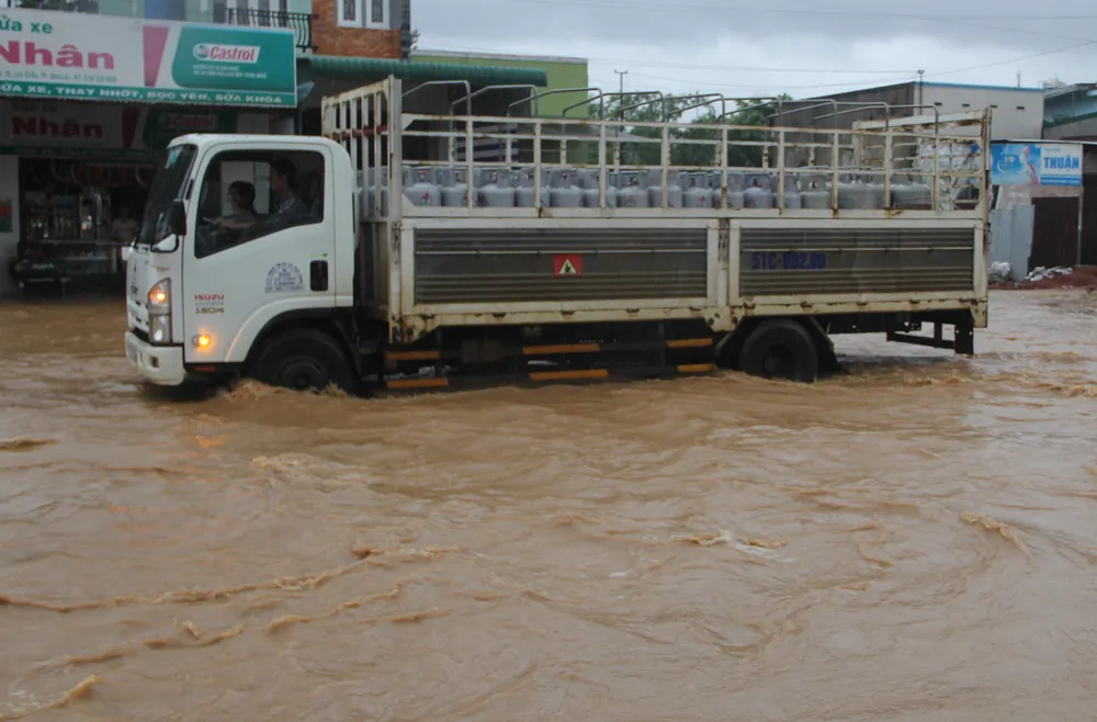 Quốc lộ 20 ngập sâu, tắc đường 5km ảnh 1 Quốc lộ 20 đoạn qua xã Lộc Châu, thành phố Bảo Lộc bị ngập sâu trong nước