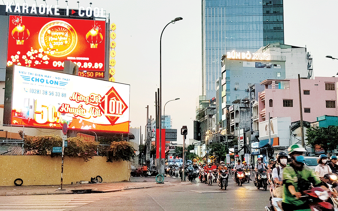 Bảng quảng cáo ở ngã tư đường Nguyễn Thị Minh Khai và đường Cách Mạng Tháng Tám, quận 3, TPHCM .  Ảnh: DŨNG PHƯƠNG