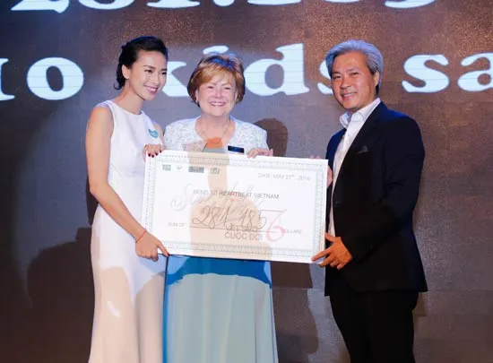Cuối đêm dạ tiệc đã có 251.182 USD (tương đương 5,5 tỷ đồng) được quyên góp để gây qũy mổ tim cho các trẻ em nghèo tại Việt Nam.