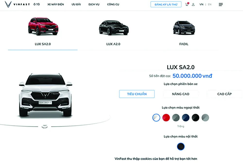 Các nền tảng thương mại điện tử hiện tại của 3 hãng trên, khách hàng có thể hình dung một cách tổng quan về cấu hình xe được lựa chọn theo sở thích. Giao diện điện tử với cơ sở dữ liệu được hãng xây dựng sẵn cho phép khách đối chiếu, so sánh cùng lúc nhiều mẫu xe, điều mà khi khách có mặt ở đại lý thường không thể thực hiện. Qua đó khách hàng cũng dễ dàng đưa ra lựa chọn và quyết định sớm.
