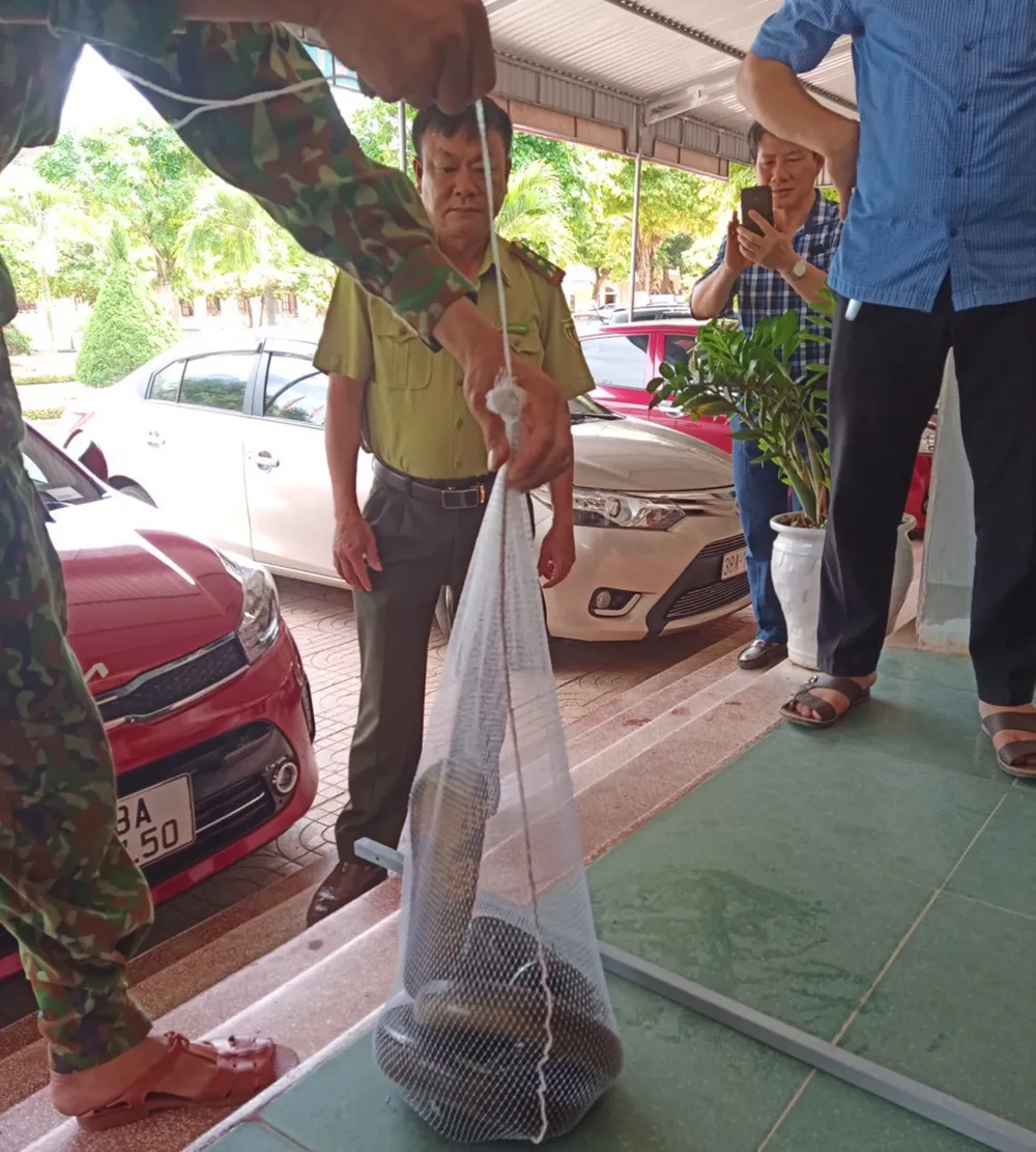 Chiều 11-5, cá thể rắn hổ mang chúa được bàn giao cho Vườn quốc gia Vũ Quang