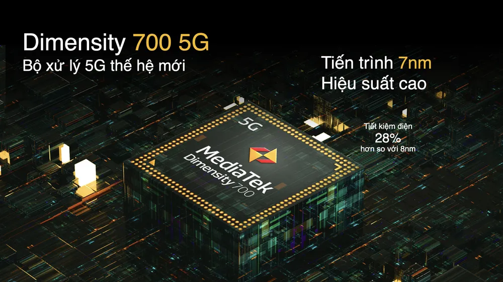 Tiến trình 7nm tân tiến của bộ xử lý Dimensity 700 5G giúp realme 8 5G tiêu thụ điện năng thấp hơn